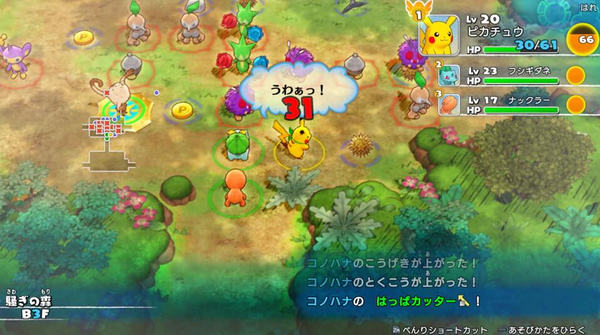其实《宝可梦救援队》系列,只是一个宝可梦的换皮游戏,游戏真正的核心玩法,来源于著名的《风来的西林》系列,随机生成的迷宫,多样化的道具,多向攻击设定,一旦game over,道具和级别全部归零的残忍设计,很容易让新手摔机……