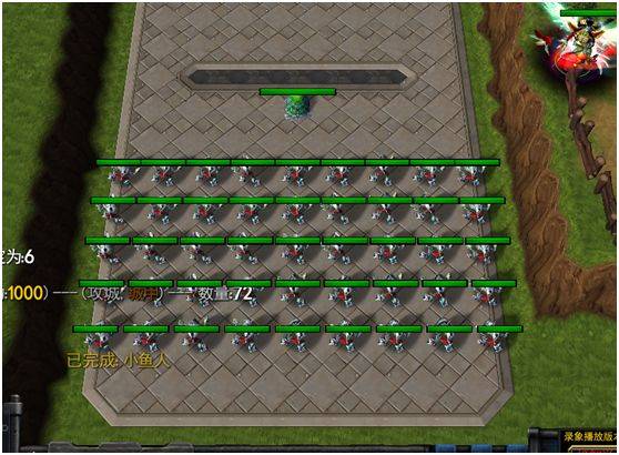 第二张图,则是在第一排鱼前面摆一个单位并且不具备推进能力的远程单位时,在他受到伤害后,可以看见后面的2排鱼全部上去了,这就是脱节与防脱节最基本的因素了。