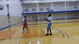这招十分常见,也极其简单,甚至你体前变向都做不顺溜,也可以轻松过掉初中生,具体是这样做的: