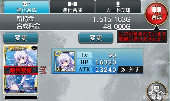 以下文字叙述(用来限界突破的卡的经验值先忽略(?5☆从L1→L90正合成总共需要71张4☆L1(合成料金21205但是逆合成只需要1张5☆L76(合成料金48000而1张5☆L76需要49张4☆L1(合成料金14621。