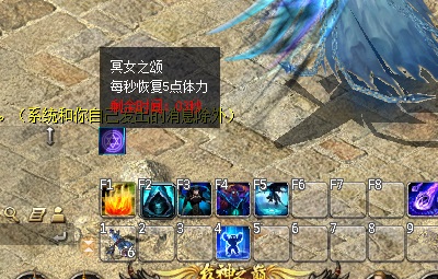 哈哈,看到了吧!这才是本篇文章重点需要讲述的地方,冥国女王附带体力效果!当召唤出冥国女王的时候,就可以给全队、包括自己加持体力恢复的增益。