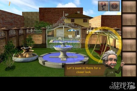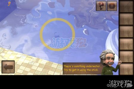 然后再点击水池,在水底能看见一个眼镜,用刚才得到的钩子把它捞起来。
