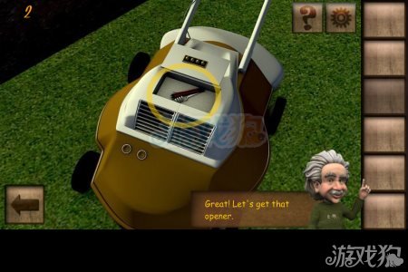 然后我们点击草坪上的割草机,按上图所示的顺序把四个按钮调整好方向密室逃生攻略,就能得到一个开瓶器。