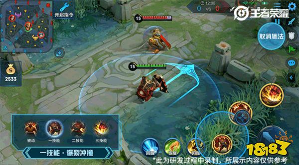 【一技能:爆裂冲撞】一技能廉颇向指定方向发起冲锋,对敌人造成伤害并将其击飞。