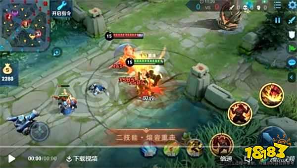 【二技能:熔岩重击】廉颇迸发狂暴力量获得护盾,并通过臂甲将力量传入地面,对附近敌人造成减速,非英雄单位会逐渐陷落到区域的重心。1秒后地面会崩裂,对区域内的敌人造成高额伤害,距离中心越近伤害越高。