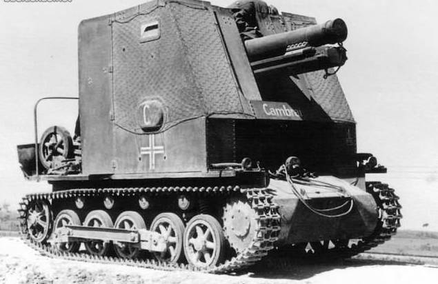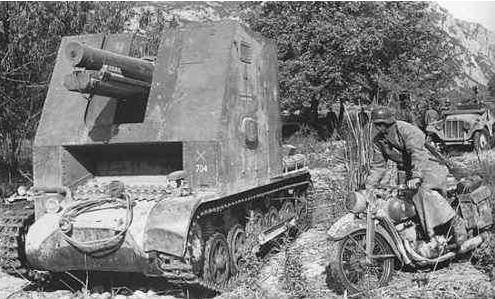 德国150毫米s.IG.33步兵炮是二战德军产量较大的步兵炮,德国从1933年到1945年,一直都有生产这种步兵炮。该炮存在的最主要问题就是重量太重,2吨的重量作为德军步兵团的直瞄火炮确实在机动性上给德军步兵团带来了很大的不便,在实际作战中,这个重量问题经常会限制其对德军步兵的支援,所以,针对该型火炮的自行化改装也在迅速进行。