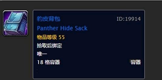 18 格豹皮背包wow背包,祖尔格拉布副本中的BOSS高阶祭司娅尔罗掉落,不过按照怀旧服的开放顺序,祖尔格拉布会在比较后期开放,届时玩家的需求量也会下降。