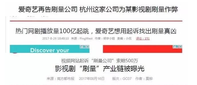 前几天爱奇艺起诉杭州一家刷量公司,是以“不正当竞争”的名义起诉的,矛头指向的是刷量公司而非影视剧制作方,这起官司一方面坐实了刷量行为的确存在,另一方面也暴露了某种窘境:视频网站——影视剧公司——刷量公司,这三者之间本身就存在扯不断理还乱的利益关系。