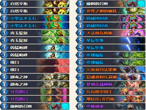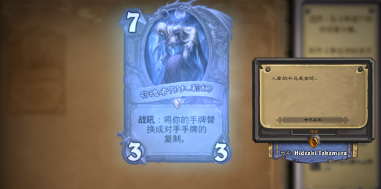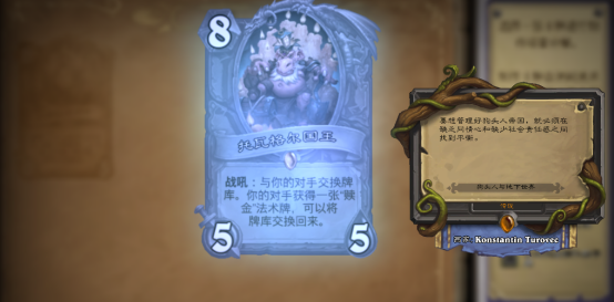 最令人难过的一件事是即便对面知道了你是换家德,也很有可以打不过你。快攻卡组可能一开始就会抢血,也许换家德会扛不住。但对于慢速卡组和控制卡组,当他们知道你是换家德的时候,已经无法再阻止你换家了。现在他们想抢血,但是血量已经抢不下来;如果他们不抢血,肯定也会一直过牌,喜欢自己的牌库可以和换家德的牌库同时被抽完换家德,这样就不会存在换家后双方优劣势太大的情况了。但谁可以和一心过牌的换家德比过牌呢?德鲁伊一回合最快可以过四张,卡组一共只有三十张牌,出不了几个回合,卡库就被抽光了。