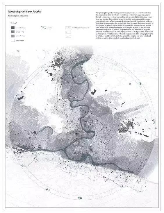 平面图可以于图面通过比例尺、指北针、等高线等方式,表示出场地环境中的尺度关系和空间组织方式等基础信息。