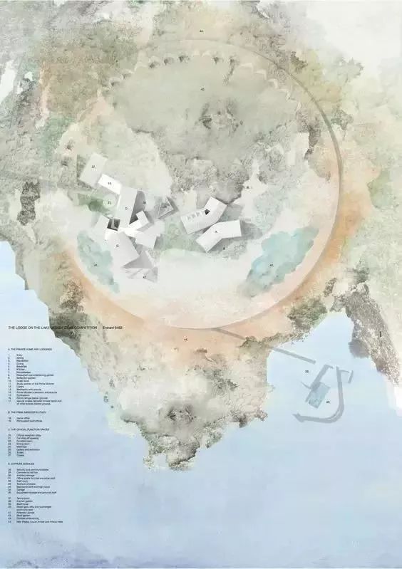 图面以宏观角度展现整体形式、设计概念、方案思路、区域划分、空间关系等设计环节。