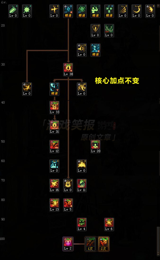红眼加点的选择在100级版本有很多,但是核心的技能加点是没有变化的,具体如下图所示: