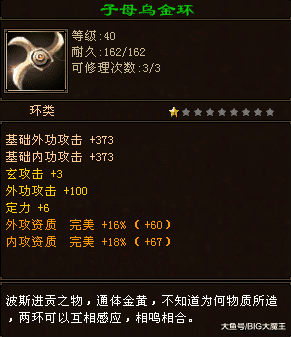 等我们都到40级的时候,大家都拼命刷F1做神器的时候,他一点都不慌不忙的。他每天的乐趣就开4个号去摩崖洞打怪。我们以前都还嘲笑他在这里升级太慢了,还不如找人去燕王古墓带人。然而他每天开4个号在摩崖洞不停的刷怪。他告诉我们捡40级的武器鉴定,总有一些号能够鉴定出双完美的。