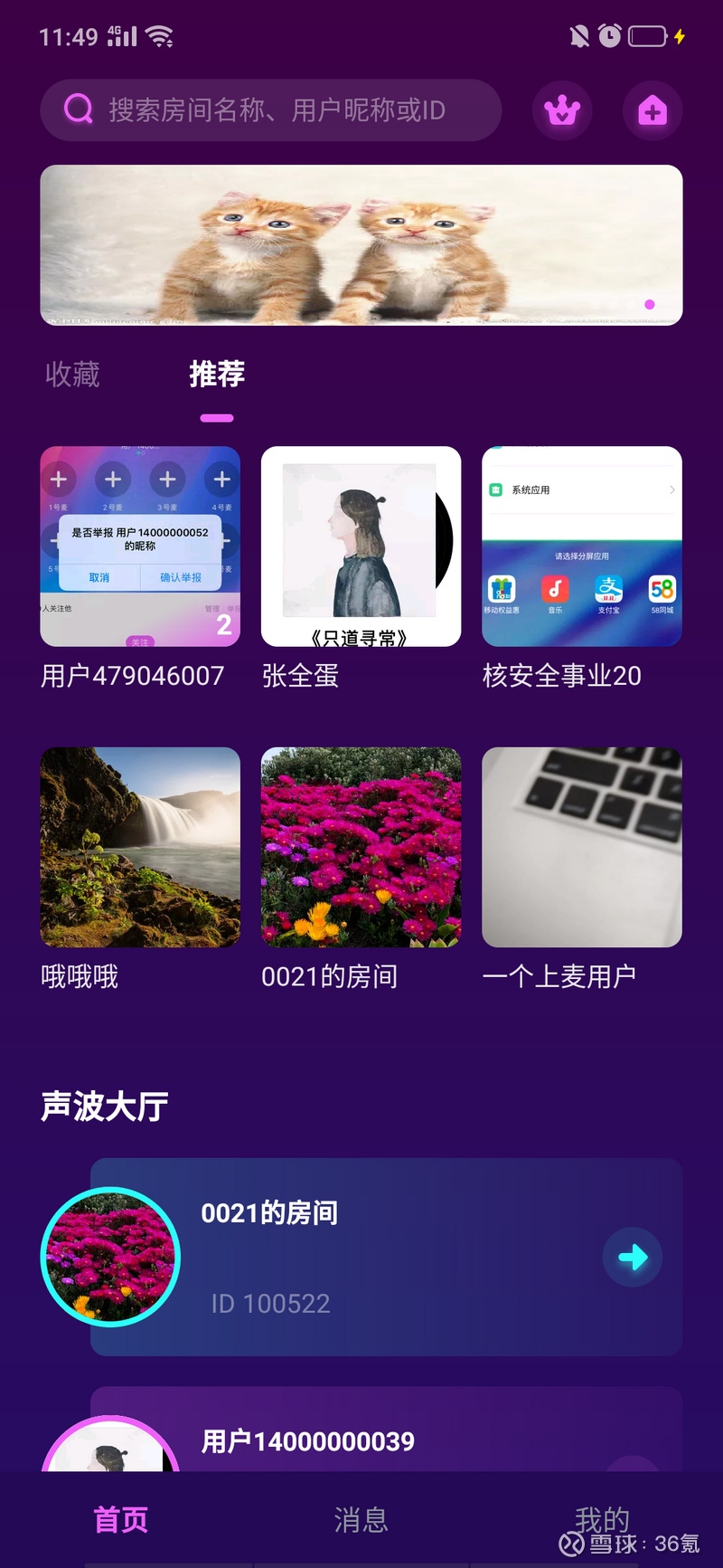 首页的“声波大厅”会显示当前所有语音房间,但该应用目前很不稳定,笔者在尝试进入其中1个房间时被“闪送”回首页。