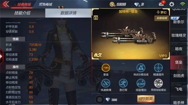 如图,MG3-银色杀手和加特林-堡垒相比,前者在威力、精度、便携数据上强于后者mg3银色杀手,穿透威力一相同,而射速、稳定和主弹夹数则是后者占优。即:前者仅在站撸和续航效果上弱于后者,其他则全面领跑。