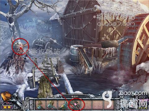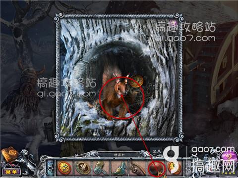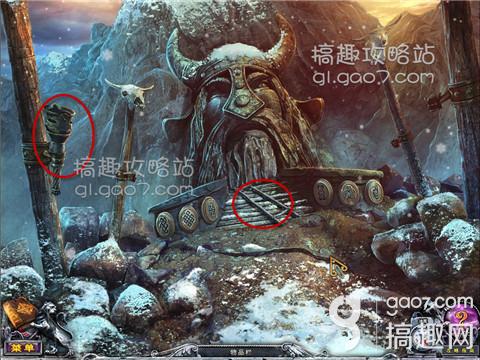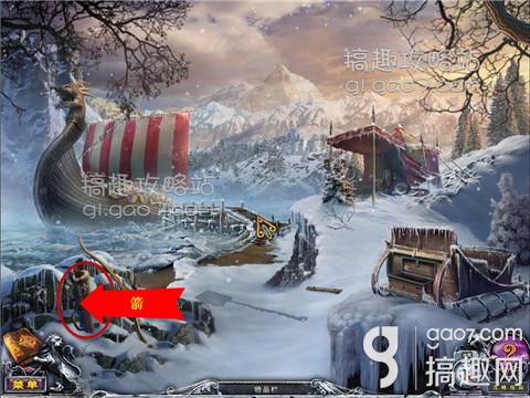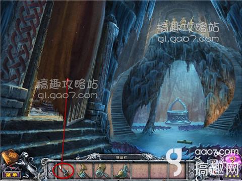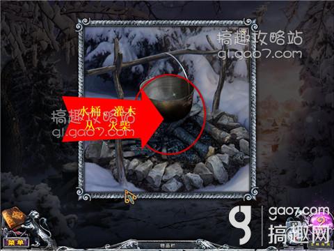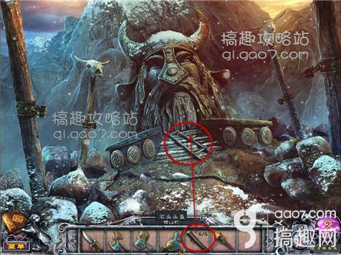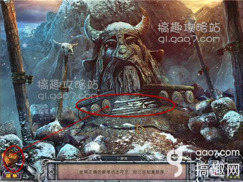 回到水车处,将十字架放在维京人头像的头顶,得到一个符文和一张维京人的战士图,我再次来到城堡外的小屋,爬上梯子,将符文放在书上的凹槽中,得到特殊的勺子,我回到井边,用勺子舀了一勺水,往洞穴右边走去。