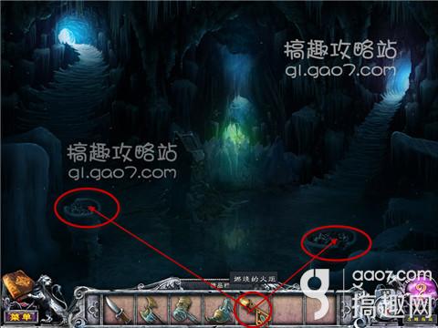 我回到洞穴右边,在幕布处我找到一个石盘(寻物场景)。