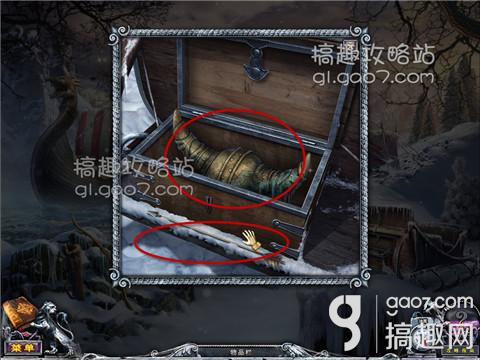 拼完拼图打开机关后,我在里面看到一个头盔和一支箭,箱子里还有一个卷轴,原来去到金苹果的所在地要先找到那艘船雕塑的眼睛。