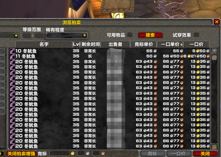 众所周知,在魔兽世界怀旧服中有一群依靠拍卖行赚金币的地精玩家,这些玩家往往可以通过炒作来控制服务器中某些道具的价格走向,比如BWL开放前的黑莲花,目前的月布和火焰花等等,而最近几天地精们又把手伸向了一款即将绝产的道具——冬鱿鱼。