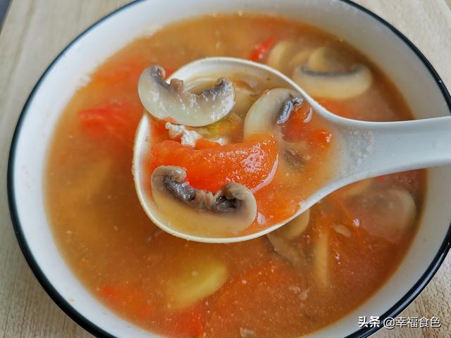 鲜美美味的番茄蘑菇汤,鲜甜清爽不油腻,比番茄鸡蛋汤更好喝