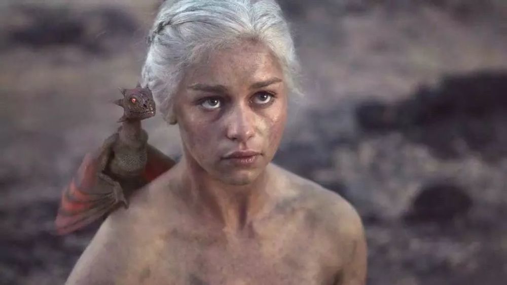 龙妈是前朝公主,属于坦格利安家族,外貌异常美艳,流亡长大,被冷酷的哥哥当做奴隶卖给卡奥,结果结婚不久就死了丈夫,还被大火焚烧。从火光中走出的龙妈,立刻有了全剧最顶级的配置——龙,她逐渐意识觉醒,成为一个自信的解放者。