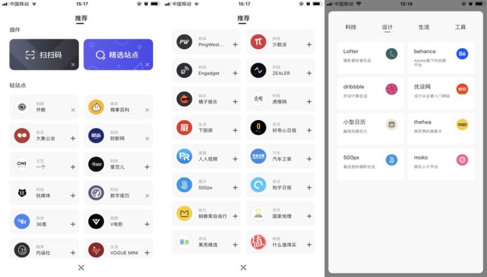 首先,夸克浏览器的设计极为简约,功能纯粹。主界面只有搜索框和数量有限的可自由选择的推荐站点,而在内容页面,夸克也进行了重新的排版,提供更纯粹的信息阅读。
