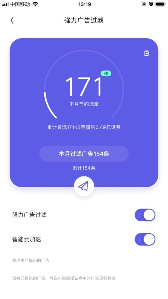 其次,借助AD Block模块,拦截一切广告的侵扰。夸克浏览器启动后一秒进入主界面,不像其他APP那样设置一个启动广告。当然,借助AD Block模块夸克浏览器最大可能的拦截了市面上常见的TOP800的广告站点,并支持手动标记广告功能,以避免来自广告的干扰。而且,拦截广告的同时也节省了流量,给真正的信息获取留下更多空间。