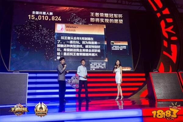 在令人心潮澎湃的开场过后,腾讯互娱市场部总经理高莉女士出现在现场,与现场观众畅谈《王者荣耀》的前世今生。《王者荣耀》用短短的240天王者荣耀盛典,就拥有了超过1亿注册用户、3000万日活跃用户、每天超过10亿个小兵为玩家全天候服务的庞大数据,震撼着现场的每一位观众。