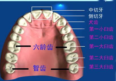 六龄齿。它的身份比较特殊臼齿,既是人类的第一颗恒牙,也是第一颗恒磨牙,在儿童六岁时萌出,故而得名。六龄齿也是臼齿一部分,它是所有臼齿当中最容易受到龋病危害的一个,尤其是下颌六龄齿。它的位置处于臼齿的正中央,六龄齿的健康与否对前后臼齿都会带来巨大的影响,因此,保护臼齿应首先保护六龄齿。
