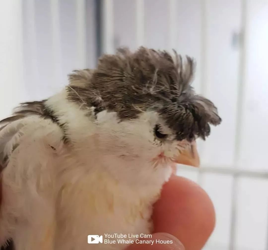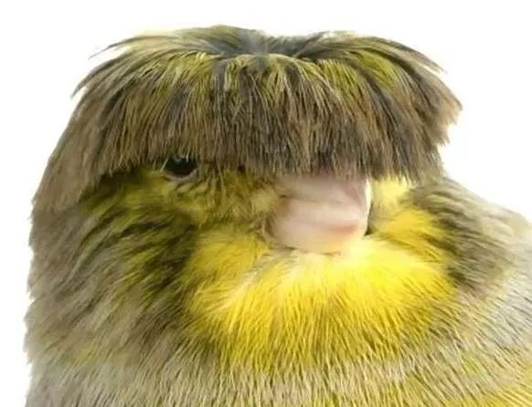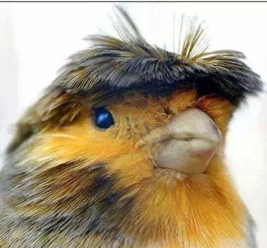 这种头顶一个假发的鸟,叫做Crested Canary,凤头金丝雀。