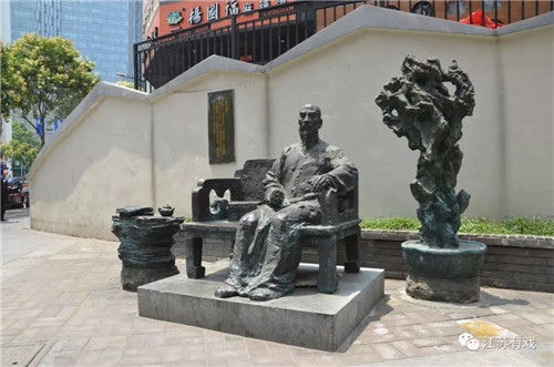 如今,沈举人巷口有一尊沈九思的雕塑,只见他身着长衫,端坐榻上,右手握书卷,左手倚在把手上,身旁还放着一匣线装书,一派怡然自得模样。