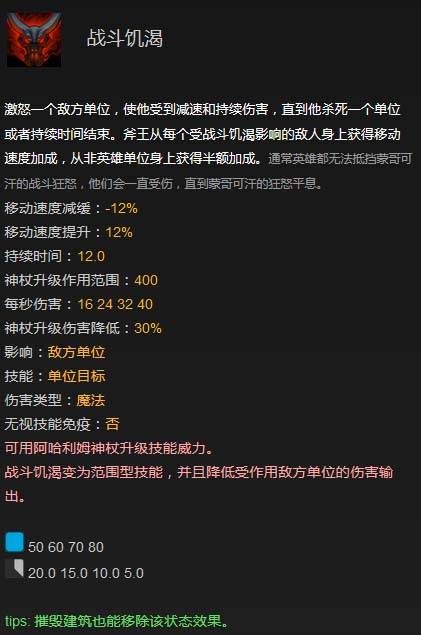 其实斧王当4号位,不是不可以,只是需要我们换一种思路。因为斧王没有可以保人的技能,所以我们要反守为攻,主加点灯——战斗饥渴这个技能,只要对方辅助一露头小火枪出装,就给它点上。由于需要击杀单位才能解除状态,敌方辅助除了反补就没有其他办法可以解除这个技能。几个回合来下,脆皮的辅助必定残血,不敢露头。