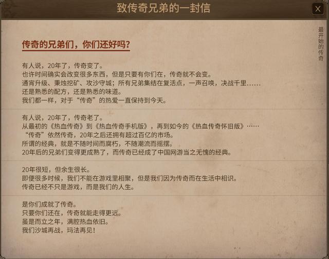 首先,IP要足够“老”。《热血传奇》20年的发展史无需多说。从最初的木剑杀鸡、点蜡挖矿的点卡计费时代到2005年《热血传奇》正式启用CPS免费模式,这段让玩家津津乐道的回忆距离当下确实相隔太久,再去细品自然有值得回味的价值。