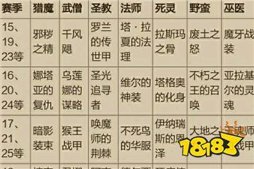 首先要知道赛季套装是每个赛季按顺序轮回,比如20赛季套装就是猎魔人的娜塔亚的复仇,武僧的乌莲娜的谋略,圣教的圣光追寻者。法师的维尔的神装。死灵法师的塔格奥的化神,野蛮人的不朽之王的召唤以及巫医的亚拉基尔的灵魂。