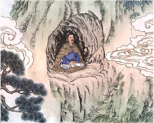 邱祖在龙门期间,所居之洞离地面有丈余(北京白云观殷诚安敬绘)
