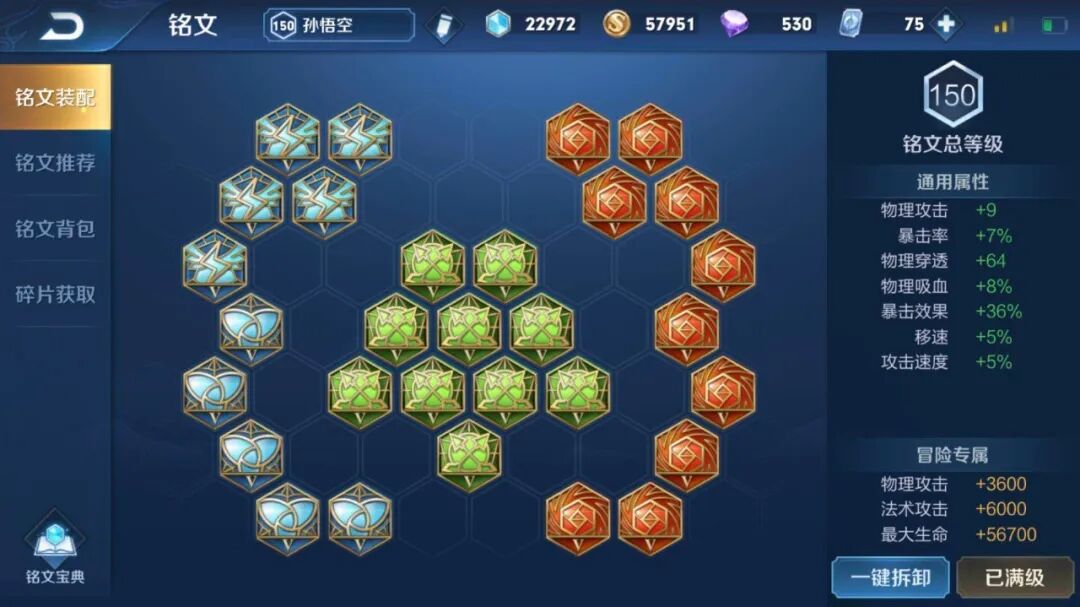 猴子作为一个刺客移动速度还是增加一点的所以出了5个狩猎,因为不装备不出吸血刀所以出5个夺萃,鹰眼不用多说是个刺客基本都会出,增加前期的伤害,出10个无双是为了打出更高的暴击效果,这个无双对猴子没有限制不像射手类英雄出3个就够了。这套铭文可以看出属性还是很全面的,很合适猴子用,目前也有很多人这样出。