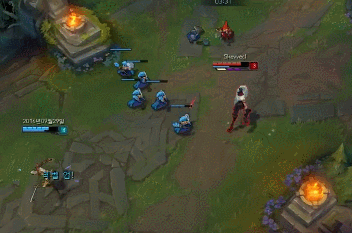 2。 带疾走的烬除了线上能够起到一个移速提升的作用,在游走中也是一样。我们在前中期游走的时候完全可以效仿上图中Dopa的做法,河道将到下路,抬手W然后R架枪扫射四发,打出足够的伤害开启疾走进场收割,一波肥直接收获三杀。这样的安全性极高,并且把握性大,一切的基础都在于技能的准度以及操作上。