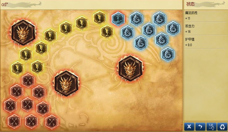 红色带上攻击力符文,最大化盖伦的输出能力,由于盖伦的技能加成十分的高,带上攻击符文是最适合的。黄色带上固定护甲,配合盖伦的W增加盖伦的抗性。蓝色带上固定魔抗,在中后期的团战中,魔抗符文能够起到很好地抵挡魔法伤害的作用。紫色精华则带攻击力精华,最大化盖伦的输出伤害。
