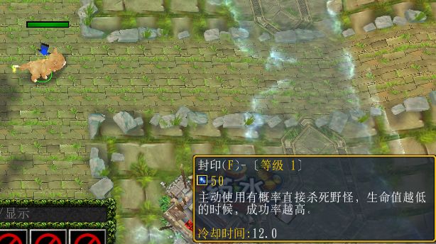 开局的时候我们只是一只发抖的小猫猫,只有一个没有伤害的封印技能,这个技能是前期方便获得技能用的,技能怎么获得下文再讲~