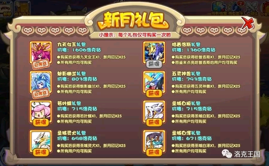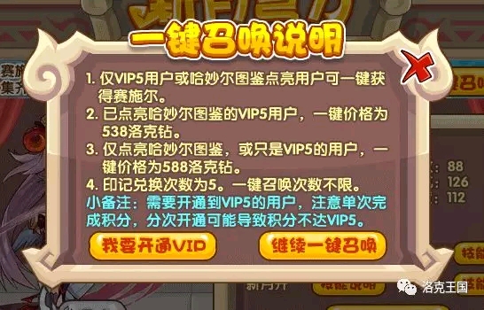 图鉴已经点亮哈妙尔或者VIP5用户,才可以通过一键的方式召唤。两个条件都满足的用户新月攻略,价格为538洛克钻。而只满足其中一个条件的用户,价格为588洛克钻。