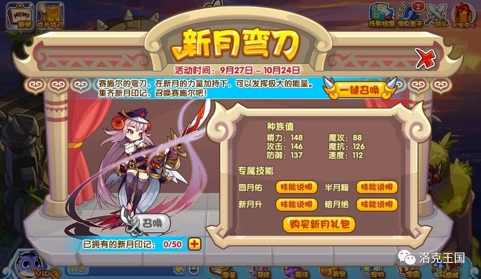 通过各种方式凑够了50个新月印记之后,你就可以召唤赛施尔啦!(用新月印记兑换的上限次数为5,一键召唤不限次数。)