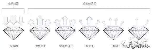 在4C里面,我跟大家最想要强调一点,也是最重要的,就是切工。因为钻石就是利用折射让它看起来更闪,钻石每个面之间的夹角很重要,切碎了就不闪了。