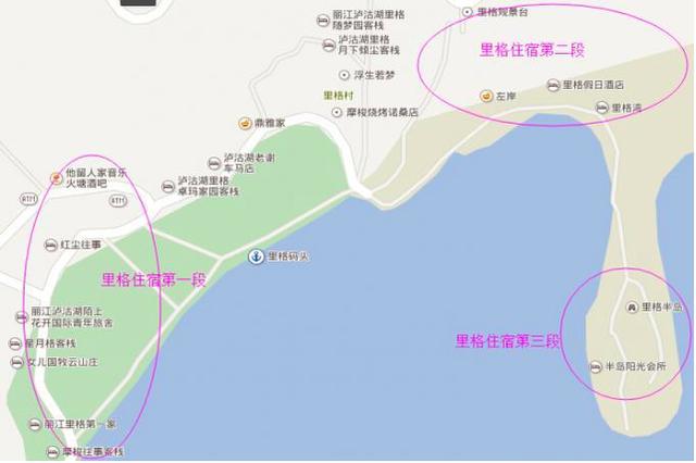 里格是 泸沽湖 的一个村落。这里开发稍晚,保留了原生态。从里格村口开始,原本第一家客栈叫“里格NO.1”,现在又新开了家摩梭往事,直到里格码头,可以算作里格住宿的第一段。这一排的客栈,大家注意看客栈离湖的距离来判断是否有湖景房。距离湖远的,就是没有湖景房的。视野也会有影响,很多房间是看不到日出日落的。总之,经济实惠是这里客栈的共同点。