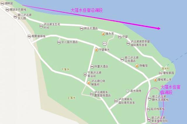 大落水村是 泸沽湖 的一个村落,开发较早,是 泸沽湖 交通的中心。从 云南 地界进入 泸沽湖 的话,都要首先抵达大落水。大落水的客栈数量比里格的多,设施也更齐全。大落水的客栈是沿着湖岸线建的,所以几乎每家都有正宗的湖景阳台房。如果不是一定要住水上屋的话,大落水绝对是更舒适的度假体验,空调热水一应俱全。