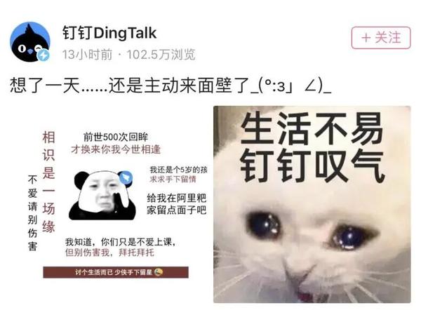 说起钉钉,这段时间真的是众矢之的一般,因为网课等事情被“揪”了出来称为了很多up主鬼畜的对象,甚至连B站官方都转发了一首鬼畜神曲并call了钉钉官方来搞事情。之后钉钉在B站上的官方号就发布了一个“面壁”的信息被抬了出来,当时只有2级的钉钉官方,成为了大家欺负的对象,一个2级小号就是个“弟弟”(滑稽)。
