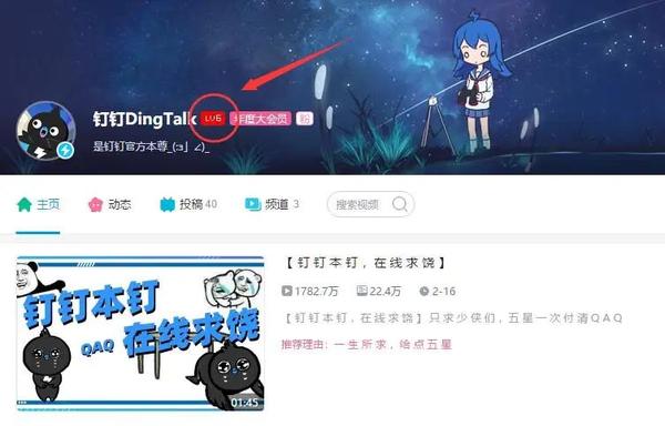 不过宅在家的这段时间里,ACG次元饭君则是发现了一个升级超快的B站up主,它仅用了半个月的时间,就从一个2级小号成为了知名的6级up主。其实这个up主的名字不少人也十分熟悉,可能这段时间里大家还吐槽过“他”,那就是钉钉。