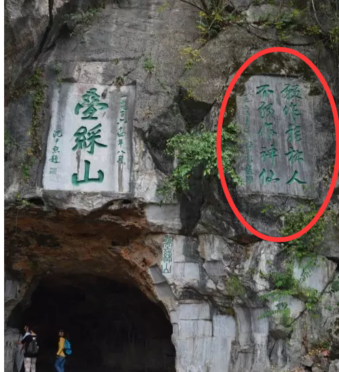 右边一块是陈毅元帅写的“愿作桂林人,不愿作神仙”。陈毅元帅一生曾3访桂林,“愿作桂林人,不愿作神仙”是在1963年2月,他陪同西哈努克亲王游览桂林时写下的。