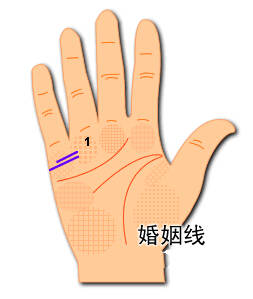 婚姻线在小指下方中缀的人,主因过于望重物欲、一时私性强,所以过招致变爱或者成亲生计的蟠踞。