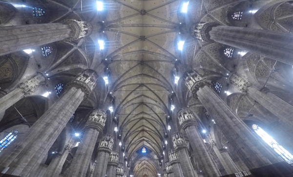 第一个感觉是,大。行路男去过巴黎圣母院,这里比那里大多了。教堂长130米宽59米,面积11700平方米,可容纳近4万人,几乎是当时米兰全城的人口数量。