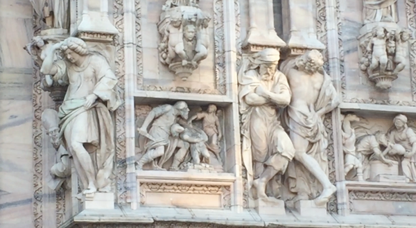 维斯康提家族之后是斯福尔扎家族,也信仰天主教,两大家族除了给钱,还批准矿山里的大理石随便用,这让我们看到全欧洲最大的大理石建筑。可能因为雾霾少,空气好,到现在还很白。